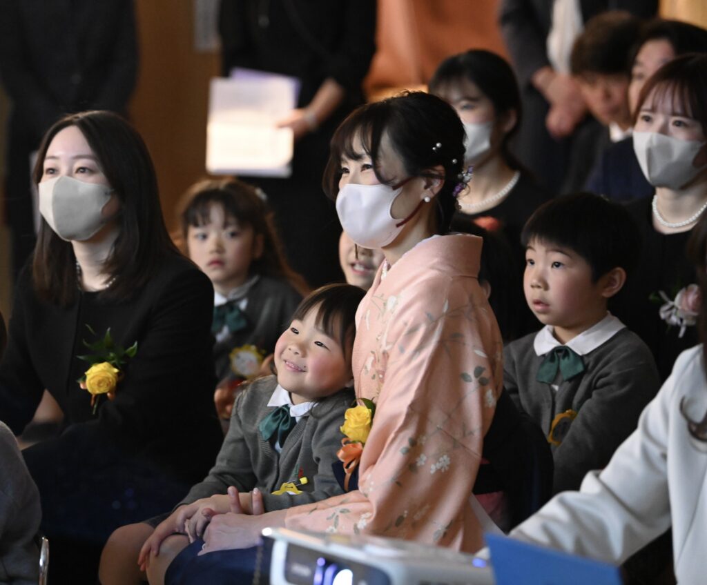 手話の歌や卒業のうたを歌って第73回修了生の卒園をお祝いしました。「皆さんの夢がかなうようにいつも応援しています」
