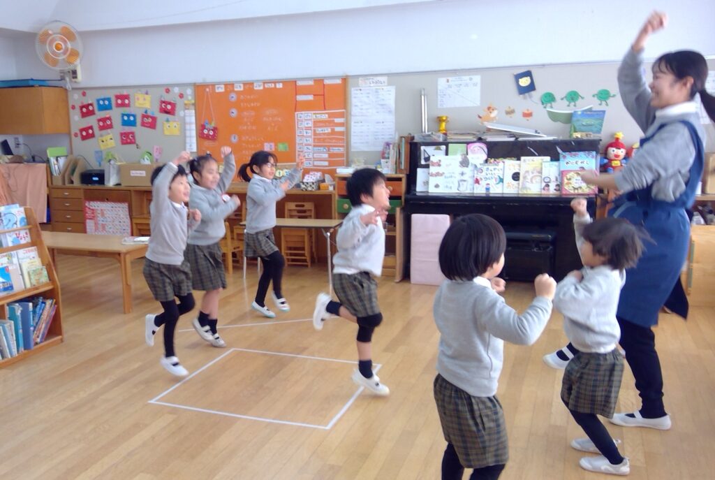 年中組の発表会の劇のダンスは、🎵サル、かに、サル、かに!♬の合唱で大盛り上がりです。